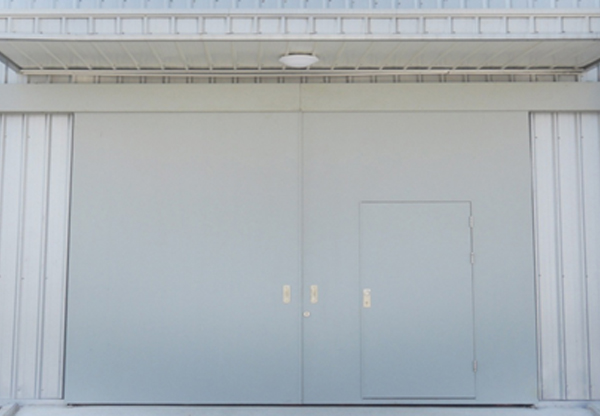 (3)平開式電動鋼大門:采用電動推杆式作為門的開啟動力,由門框、門扇(雙扇)、電機驅動裝置等組成。其啟閉操作由裝在室外的按鈕箱及室內的電控箱控製。門的開啟、關閉、密封實現了電控化,操作簡單,方便實用。鋼大門的尺寸可以製作單扇寬超過10米、高超過8米,重量達10噸的超大型鋼門。超大門還可以根據環境需要,增加其他功能,如氣密性要求、防火隔熱性要求、抗台風要求、抗衝擊功能要求、抗震要求等等。